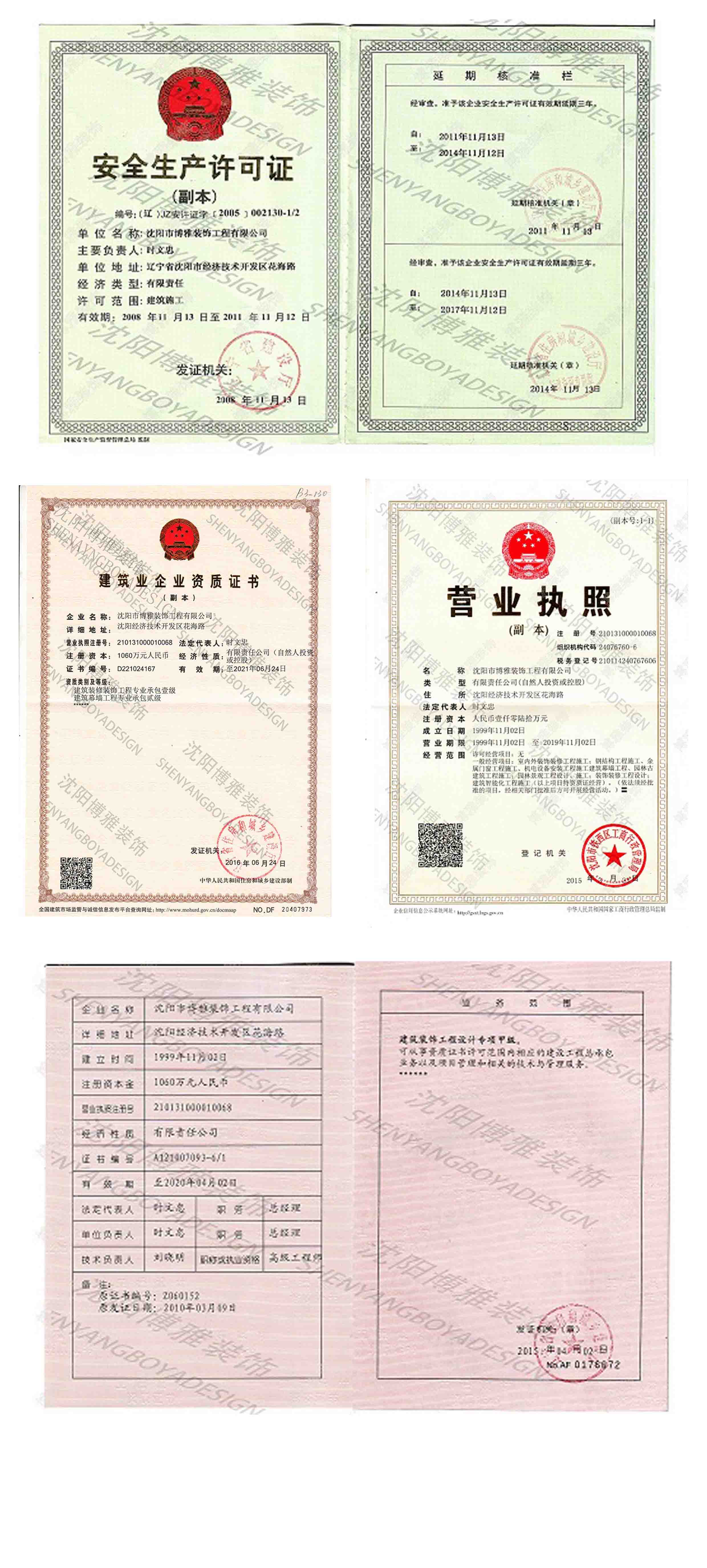 沈陽市博雅裝飾工程有限公司于1994年組建誕生。注冊資金1060萬元,裝飾設(shè)計甲級資質(zhì),建筑裝飾裝修業(yè)中同時具備國家建筑裝飾施工一級,建筑幕墻工程貳級,鋼結(jié)構(gòu)工程叁級,“雙甲”資質(zhì)的企業(yè)。